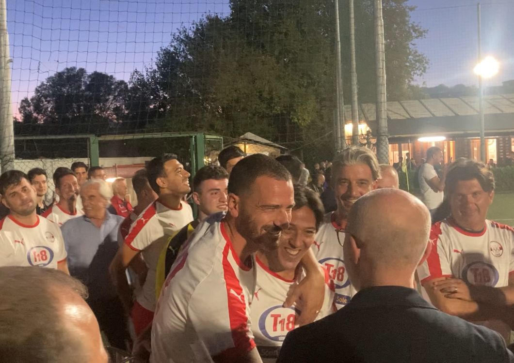Ospite a sorpresa alla partita di beneficenza “Diamo un calcio alla fibrosi cistica”. È apparso infatti anche l’ex bianconero Leonardo Bonucci, immortalato mentre abbraccia Mauro German Camoranesi. L'ex calciatore ha anche firmato autografi ai presenti.