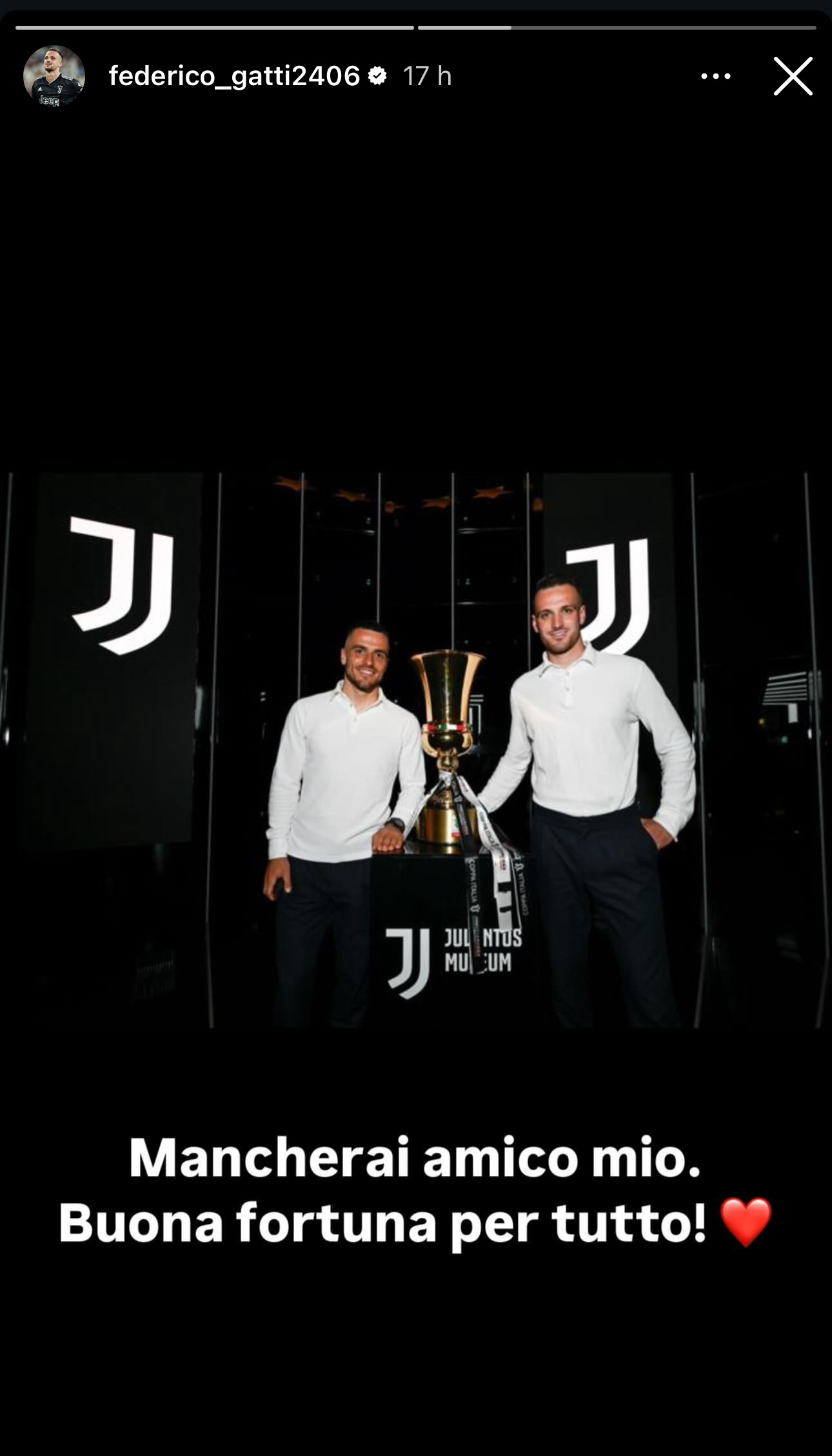 Dopo l'addio di Kostic, mandato in prestito al Fenerbahce, solo Federico Gatti ha salutato il serbo postando una foto nelle storie di Instagram: "Mancherai amico mio, buona fortuna per tutto", ha scritto il difensore azzurro.