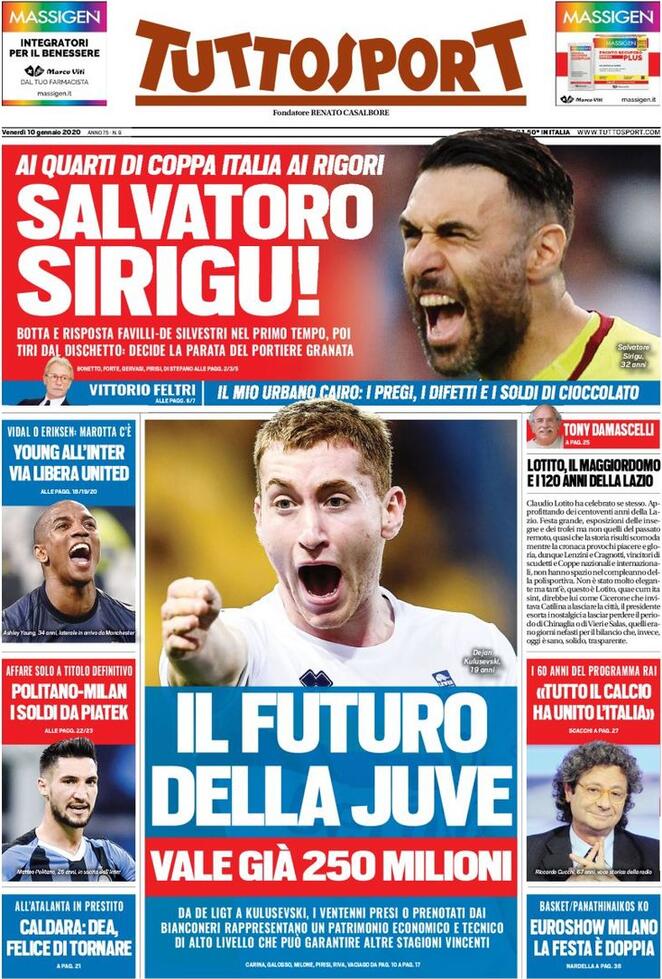 "Il futuro della Juve vale già 250 milioni", titola stamattina Tuttosport in prima pagina. Da de Ligt a Kulusevsky,i ventenni presi o prenotati dai bianconeri rappresentano un patrimonio economico e tecnico di alto livello che può garantire altre stagioni vincenti