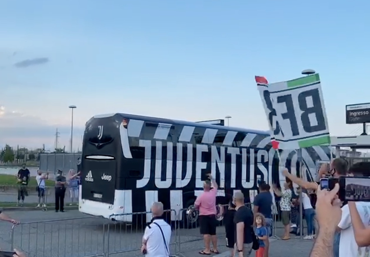 La Juventus è appena arrivata all'Allianz Stadium ed è stata accolta da un gruppetto di tifosi bianconeri: