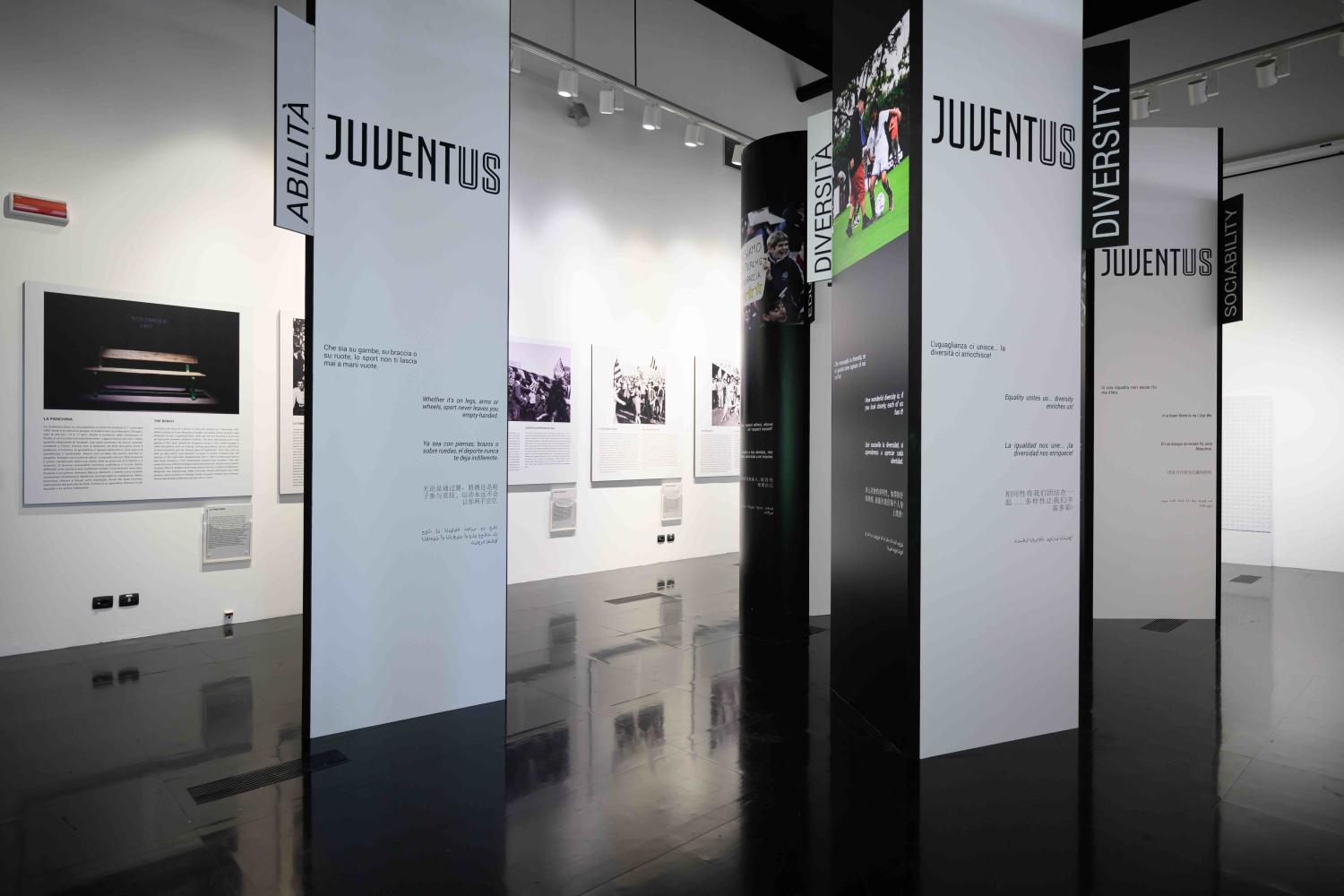 Al centro della sala i pilastri dell’inclusione: quattro totem, ognuno con la sua forma e con il suo tema, che rappresentano i 4 pilastri fondamentali sui cui Juventus ha costruito, negli ultimi 5 anni, i suoi progetti a impatto sociale: inclusione sociale, inclusione delle disabilità, inclusione delle diversità in senso ampio ed educazione. I pilastri sono la testimonianza diretta di coloro che hanno beneficiato in questi anni dei progetti programmatici: pensieri, frasi e veri e propri feedback di bambine, bambini e adolescenti che hanno restituito il valore di quanto lasciato nelle scuole durante le lezioni, in campo o nei laboratori organizzati da Juventus e dallo Juventus Museum. E proprio questi saranno i pilastri dai quali nascerà la nuova sala didattica, che aprirà i battenti nel mese di gennaio e sarà ospitata in questa stessa sala, destinata a progetti di educazione all’inclusività che saranno realizzati in collaborazione con la Fondazione Agnelli.