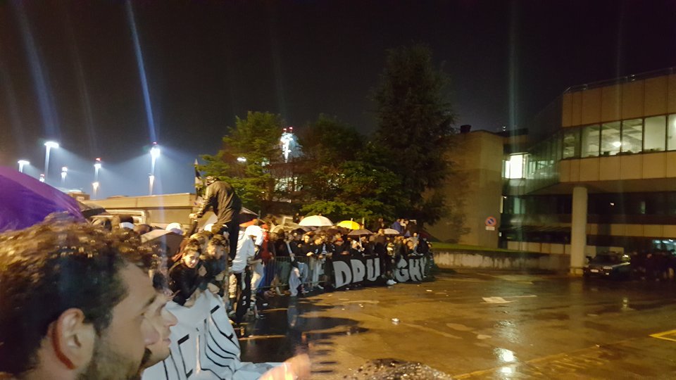 01:30 - Nonostante la pioggia, circa 300 tifosi sono arrivati all'aeroporto di Torino Caselle per salutare l'arrivo dei Campioni d'Italia